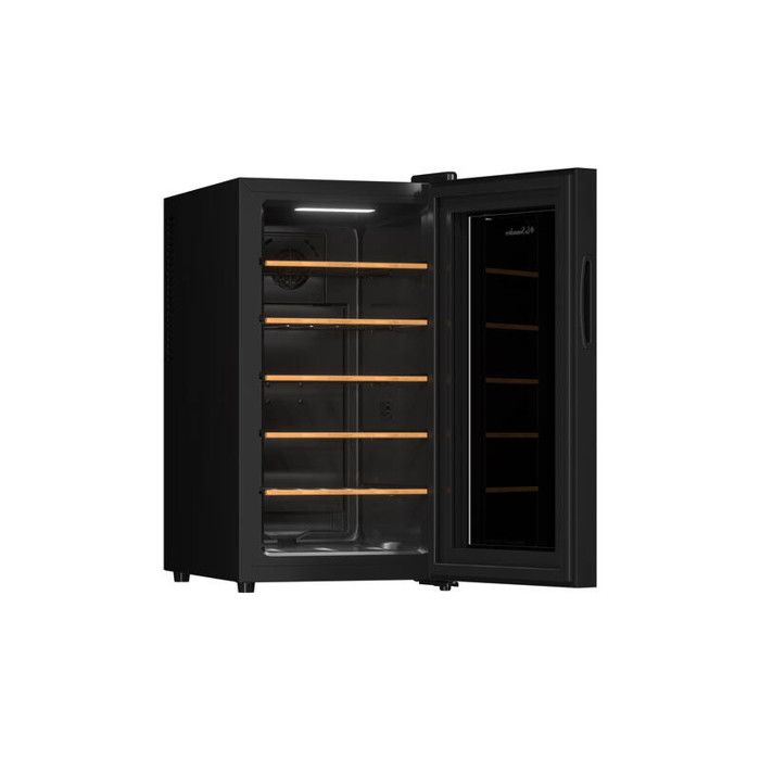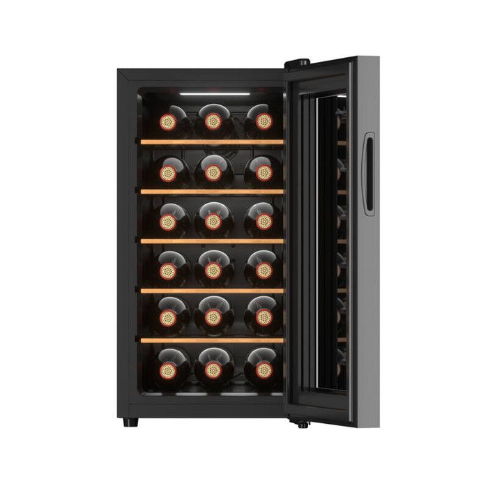La cave à vin de service 18SILENCE combine performance, design moderne et discrétion. Elle permet de conserver jusqu’à 18 bouteilles de type Bordeaux (75 cl) à une température idéale de dégustation réglable entre 11°C et 18°C. Grâce à sa technologie hybride sans ventilateur, elle fonctionne à un niveau sonore ultra-bas de seulement 25 dB, ce qui la rend idéale pour une installation dans des espaces de vie tels qu’une cuisine, un bureau ou un salon sans perturber votre tranquillité.Son design moderne en noir et gris anthracite, sa porte vitrée teintée et son panneau de commande digital extérieur en font un objet élégant et raffiné qui s’intègre parfaitement à tout intérieur contemporain.La cave est équipée de 5 clayettes fixes en acier avec une façade en bois, garantissant une organisation stable et esthétique de vos bouteilles. L’éclairage LED blanc froid met en valeur vos crus et assure une visibilité optimale, même dans des environnements peu éclairés.Compacte mais fonctionnelle, la cave 18SILENCE est équipée d’un système anti-vibration intégré, assurant une stabilité parfaite et préservant les arômes de vos vins. Son fonctionnement efficace et silencieux est complété par des pieds réglables pour une installation stable sur n’importe quelle surface.