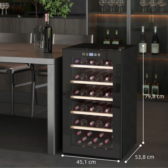 | Nom du produit | Cave À Vin 41 Bouteilles 91l 5-20°c Compresseur Porte Vitrée Led Écran Tactile Noire Silencieuse Classe A |