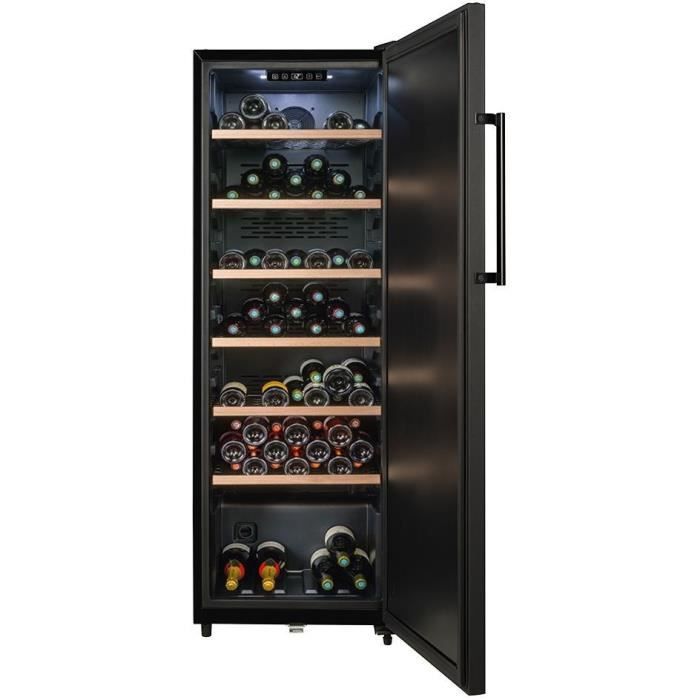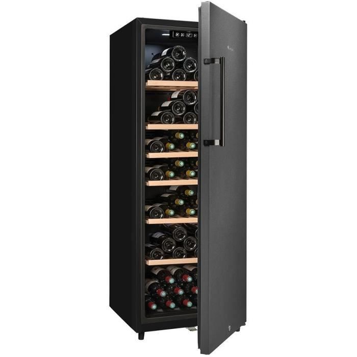 | Nom du produit | Cave à vin de vieillissement – LA SOMMELIERE – CTPNE147E – 147 bouteilles – Porte pleine – Classe E – 54 x 60 x 167,4 cm – Noir |