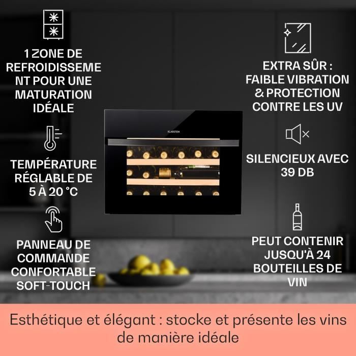 Cave à vin – Klarstein – encastrable – Armoire à vin – 1 zone – Cave à vin encastrable – 51 L / 24 bouteilles – Noir