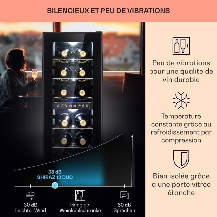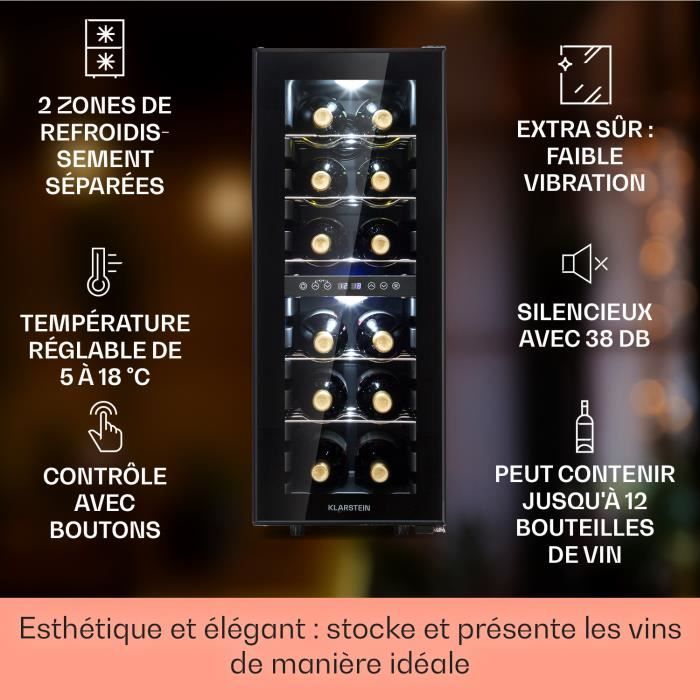 Cave à vin – Klarstein Shiraz 12 Duo – 2 zones 42L-12 bouteilles 5-12 – 12-18 °C Touch – Noir