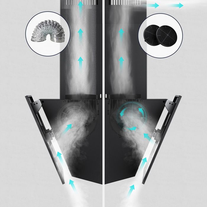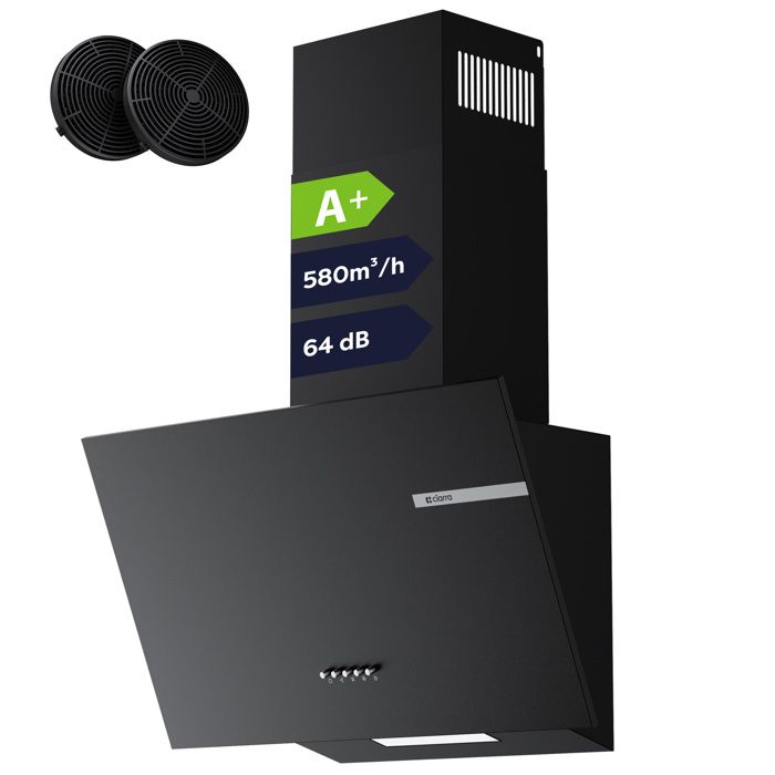 | Nom du produit | CIARRA Hotte Aspirante 60cm 580m3/h A+ avec 2 Filtre Actif 3 Vitesses Recyclage ou Evacuation Hotte Inclinée Noir CD6765AB |