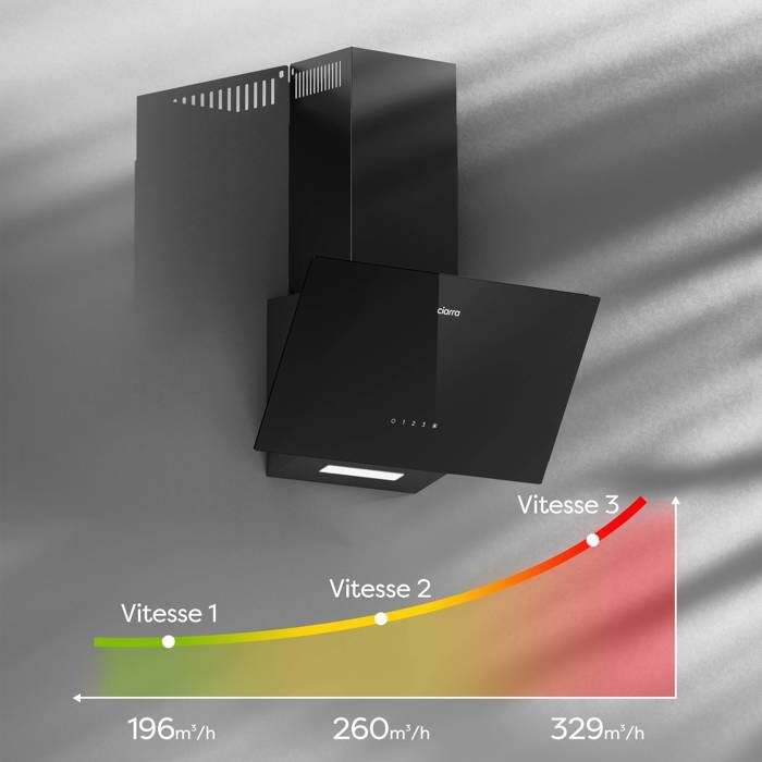 | Nom du produit | CIARRA Hotte Aspirante Inclinée 60cm 350m3/h 3 Vitesses A++ Recyclage ou Evacuation Verre Noir CD6750CB |