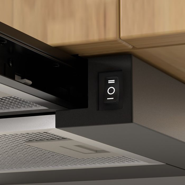 Grâce à sa conception télescopique, cette hotte se range discrètement dans votre meuble de cuisine, offrant un aspect épuré et sans encombrement. Avec sa profondeur ajustable de 29,8 cm à 45,23 cm, vous pouvez facilement ajuster la profondeur selon vos besoins, ce qui vous permet de maximiser l’espace disponible et d’obtenir un agencement harmonieux.