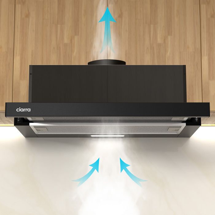 CIARRA Hotte Téléscopique 60cm Classe A++ 370m3/h 2pcs Filtre Actif Hotte Tiroir Intégrée Noir