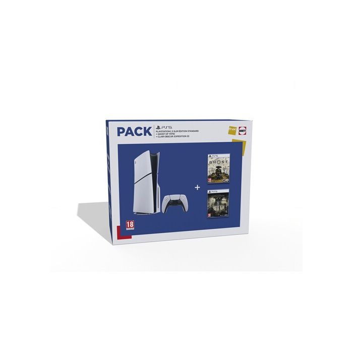 Pack Fnac Console Sony PS5 Slim Edition Standard Blanc et Noir + Ghost of Yōtei + Clair Obscur: Expedition 33.