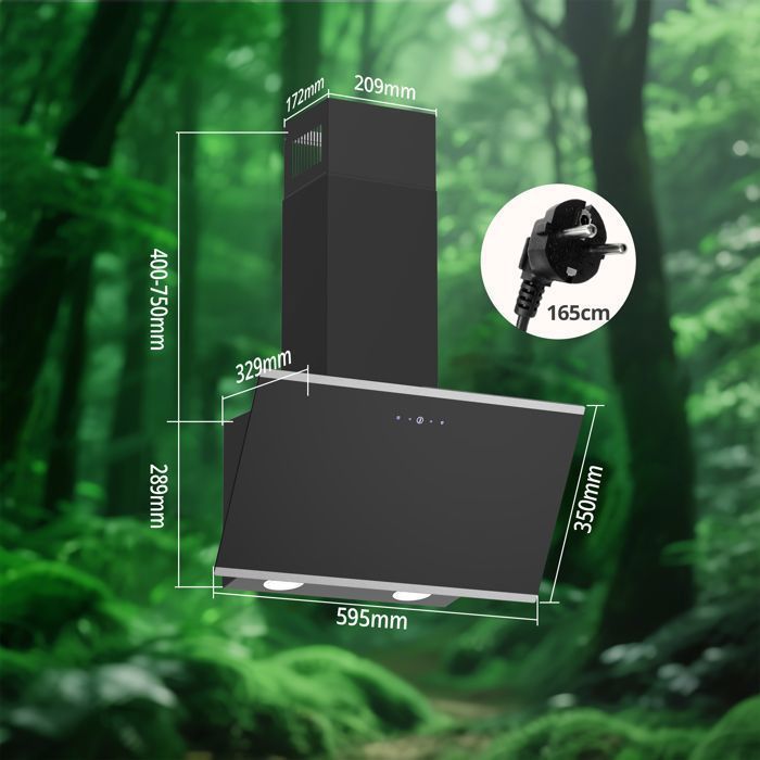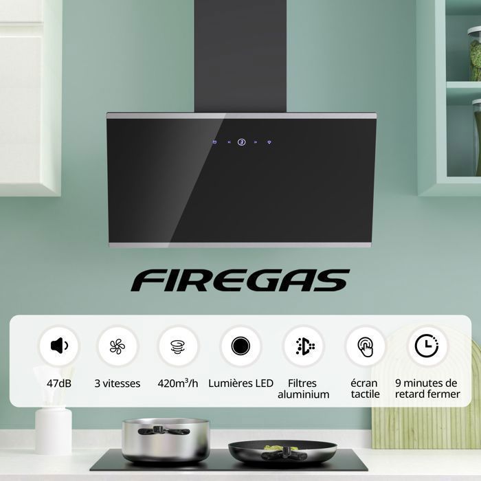 | Nom du produit | FIREGAS Hotte aspirante 60 cm-recirculation et évacuation-420 m³/h-3 Vitesses-CC130 Filtre à charbon-Noir-écran tactile-A++ |