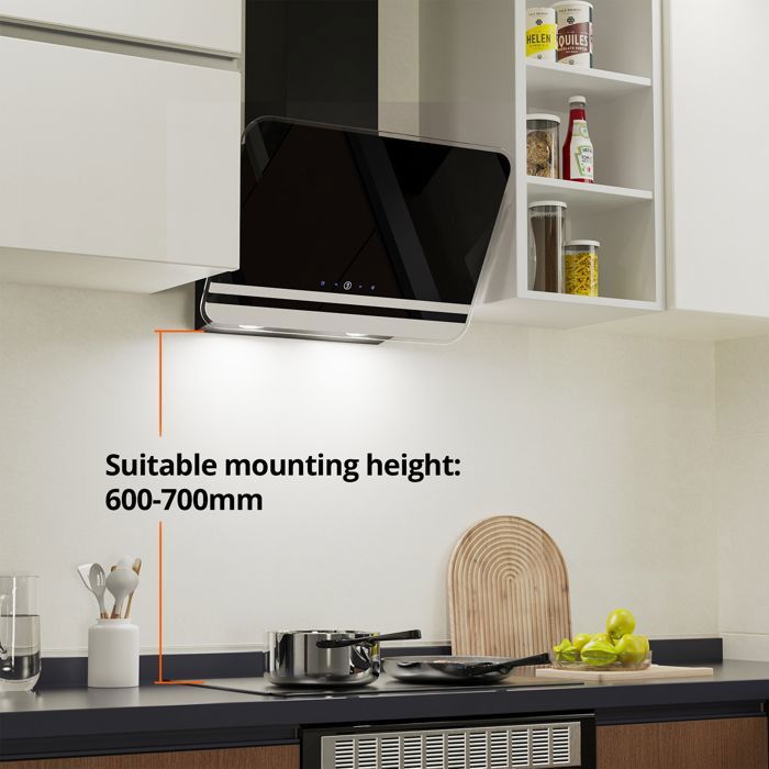 FIREGAS Hotte Aspirante 60cm, Hottes de Cuisine Inclinées, Débit d’Air Puissant 578 m³/h,Ecran Tactile, Classe énergétique A++