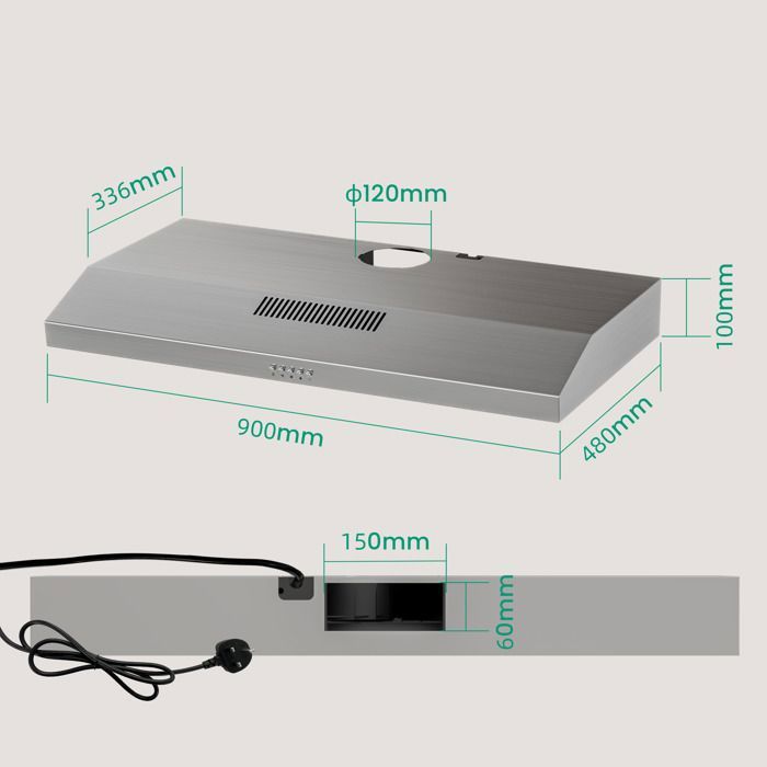 FIREGAS Hotte Aspirante 90cm-sous comptoir-recirculation et évacuation-CC130 Filtre à charbon -3 vitesses-Inox-Classe énergétique A