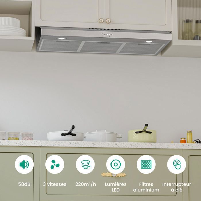 - Caractéristique spéciale:Éclairage LED, Filtre à graisse