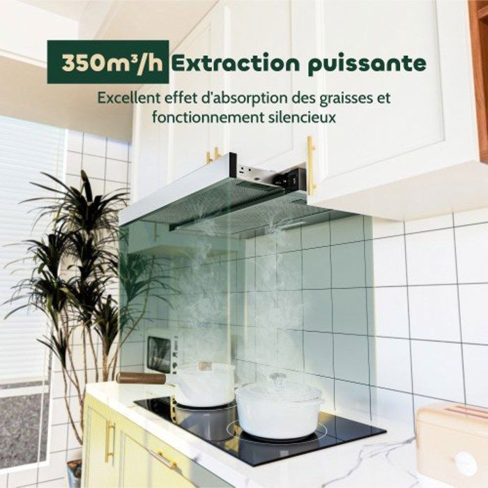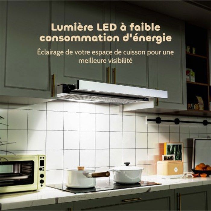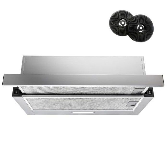 FIREGAS hotte tiroir téléscopique, hotte aspirante intégrée 60 cm, 350 m³ / h, recirculation ou évacuation, 2 vitesses, commande par interrupteur à bascule, avec filtre à charbon