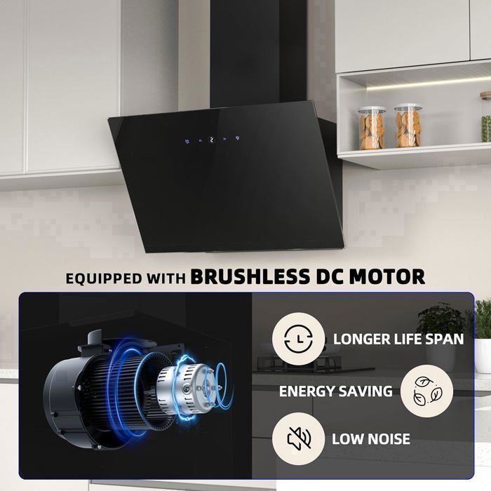 - Technologie de moteur Efficient Drive : moteur de hotte silencieux et économe en énergie pour une cuisine plus silencieuse.