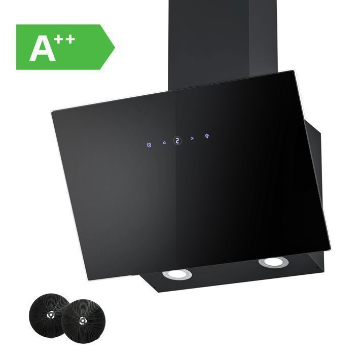 FIREGAS Hottes Aspirantes 60cm, Hotte de Cuisine Inclinée, 578m³/h Puissance d’aspiration élevée, Evacuation ou Recyclage, Commande Tactile, Lumières LED, 2 Filtre à Charbon, Classe A++