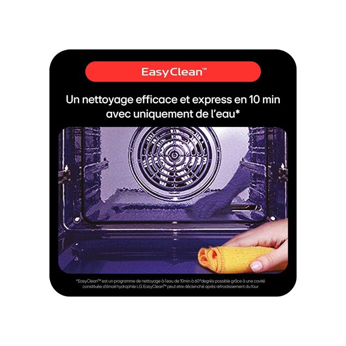 Le design sobre et raffiné du four LG s’intègre parfaitement dans toutes les cuisines. Sa poignée ergonomique facilite l’ouverture, tandis que la fermeture douce assure un confort d’utilisation optimal.Assistant en cuisine