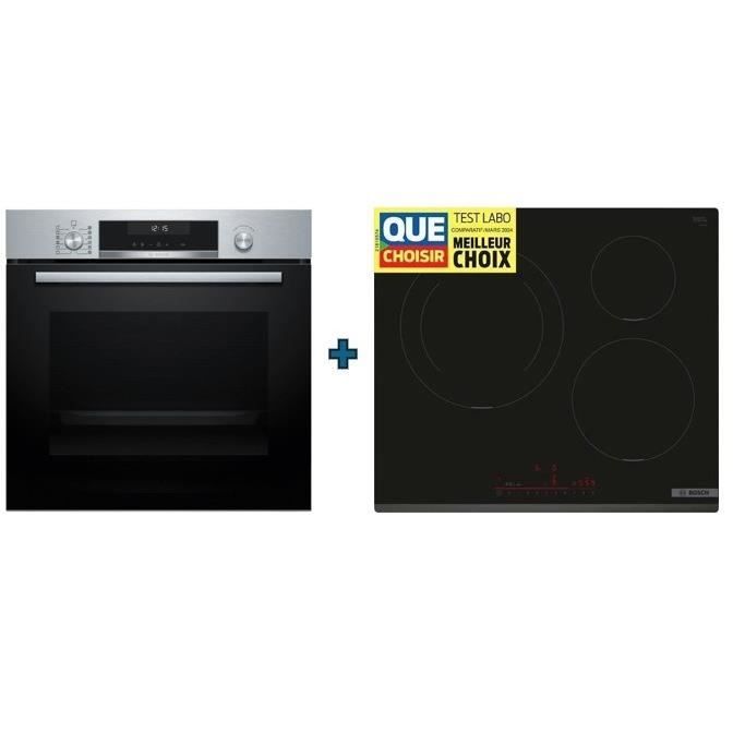Découvrez le pack moderne avec le four pyrolyse BOSCH HBG578ES7F en inox et la plaque à induction PIJ631HB1E. Le four de 71L propose 9 modes de cuisson et un nettoyage facile par pyrolyse. La plaque à induction avec 3 foyers assure une cuisson rapide et précise, alliant élégance et performance.