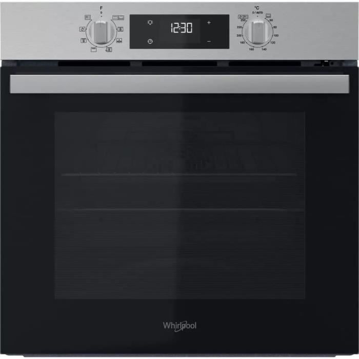 Découvrez ce Four multifonction encastrable Whirlpool. Il possède la chaleur tournante, 2 types de nettoyage, Pyrolyse, classe énergétique A.
