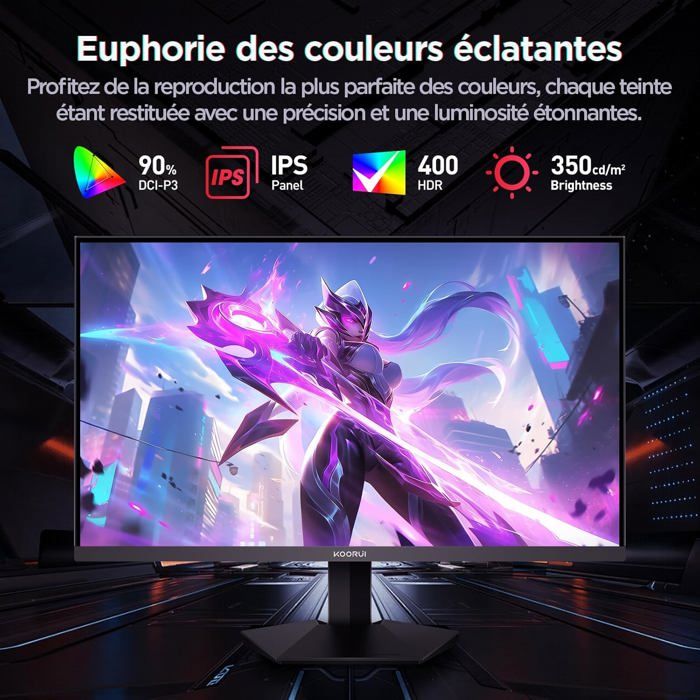 | Fonctions | [Excellente qualité d’image] Ecran pc gamer 24 Pouces avec technologie IPS, angle de vision ultra-large de 178° et HDR400 pour des noirs profonds (contraste 20000000 1). Une résolution QHD 2560×1440 offre 77% de pixels en plus que le FHD, pour des détails d’image et des contours de texte plus nets. Les couleurs restent vives et stables sous tous les angles, idéal pour le travail créatif ou le visionnage partagé. |
