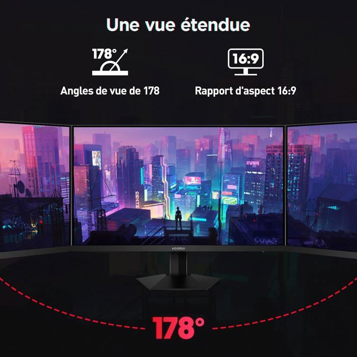 | Fonctions | [Excellente qualité d’image] Ecran pc gamer 24 Pouces avec technologie IPS, angle de vision ultra-large de 178° et HDR400 pour des noirs profonds (contraste 20000000 1). Une résolution QHD 2560×1440 offre 77% de pixels en plus que le FHD, pour des détails d’image et des contours de texte plus nets. Les couleurs restent vives et stables sous tous les angles, idéal pour le travail créatif ou le visionnage partagé. [Expérience de jeu efficace] Ecran gaming 180Hz élimine lag et flou grâce à son taux de rafraîchissement et un temps de réponse 1ms. Gaming ecran pc avec technologie Adaptive-Sync minim la latence d’entrée et réduit ou élimine complètement le bégaiement, le flou et les déchirures pendant le jeu et la lecture vidéo [Fonction anti-fatigue visuelle] Gaming moniteur pc avec filtre anti-lumière bleue réduit considérablement le scintillement de l’écran et garde l’image claire et lisse tout le temps, ce qui peut soulager les yeux humains. Confort visuel prolongé pour les sessions de t |