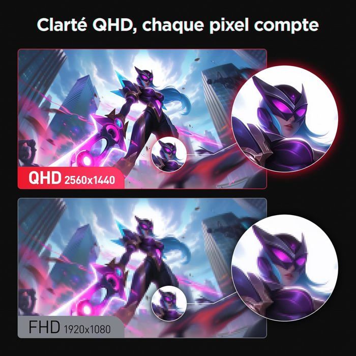 [Excellente qualité d’image] Ecran pc gamer 24 Pouces avec technologie IPS, angle de vision ultra-large de 178° et HDR400 pour des noirs profonds (contraste 20000000 1). Une résolution QHD 2560×1440 offre 77% de pixels en plus que le FHD, pour des détails d’image et des contours de texte plus nets. Les couleurs restent vives et stables sous tous les angles, idéal pour le travail créatif ou le visionnage partagé.
