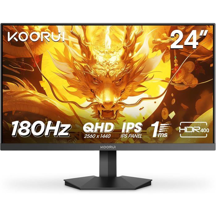 [Excellente qualité d’image] Ecran pc gamer 24 Pouces avec technologie IPS, angle de vision ultra-large de 178° et HDR400 pour des noirs profonds (contraste 20000000 1). Une résolution QHD 2560×1440 offre 77% de pixels en plus que le FHD, pour des détails d’image et des contours de texte plus nets. Les couleurs restent vives et stables sous tous les angles, idéal pour le travail créatif ou le visionnage partagé. [Expérience de jeu efficace] Ecran gaming 180Hz élimine lag et flou grâce à son taux de rafraîchissement et un temps de réponse 1ms. Gaming ecran pc avec technologie Adaptive-Sync minim la latence d’entrée et réduit ou élimine complètement le bégaiement, le flou et les déchirures pendant le jeu et la lecture vidéo [Fonction anti-fatigue visuelle] Gaming moniteur pc avec filtre anti-lumière bleue réduit considérablement le scintillement de l’écran et garde l’image claire et lisse tout le temps, ce qui peut soulager les yeux humains. Confort visuel prolongé pour les sessions de t