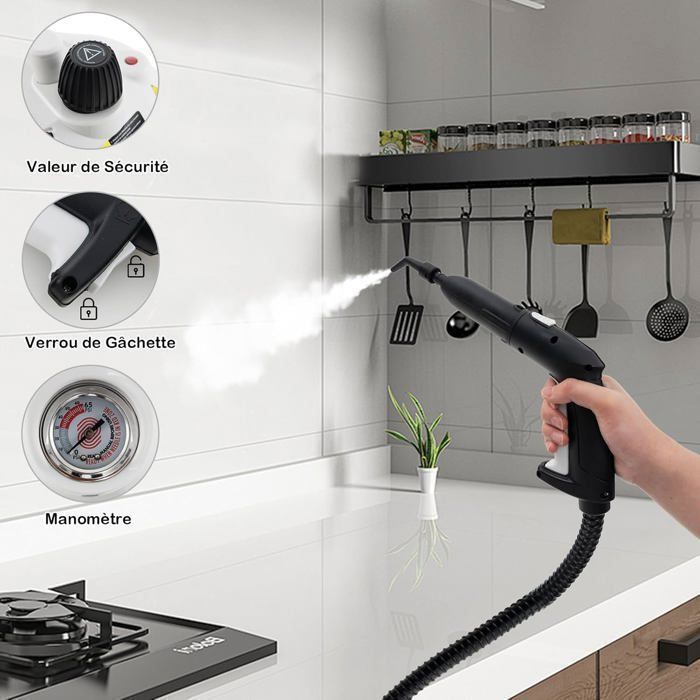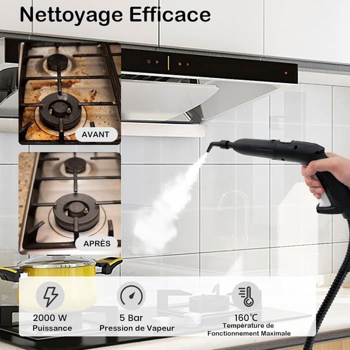 🍃Découvrez des performances de nettoyage ultimes avec le nettoyeur à vapeur de 2000W, atteignant des températures jusqu’à 160°C et fonctionnant à 5 bars. Réalisez des séances de nettoyage en profondeur et complet pour éliminer facilement les taches tenaces.