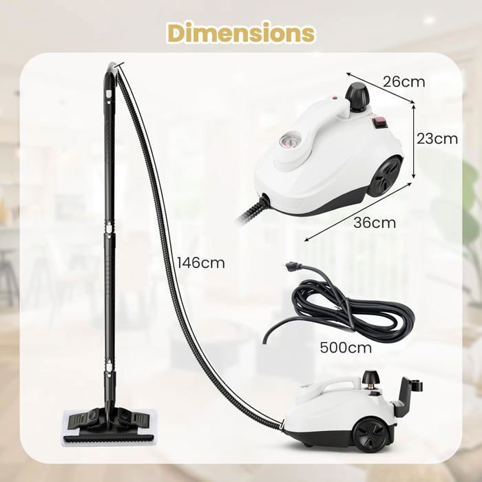 🍃Ne laissez jamais une machine encombrante vous ralentir à nouveau, grâce aux roues lisses et à la poignée portable de notre nettoyeur à vapeur. Le cordon d’alimentation de 5 m vous permet d’utiliser cette machine de nettoyage sans restriction, en nettoyant facilement tous les coins et recoins.