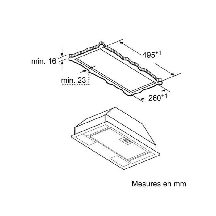 Nom du produit Hotte groupe filtrant – Siemens – iQ100 LB53NAA30 – 49.3 cm – 25.7 cm – Extraction et recirculation