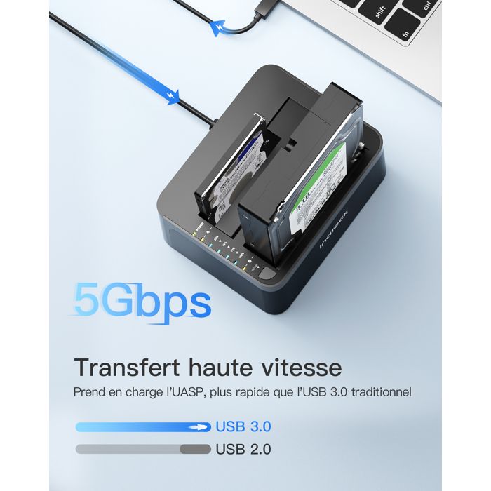 | Nom du produit | Inateck Dock Disque durs USB 3.0 pour SATA de 2,5/3,5″ SSD/HDD, Compatible UASP, Clonage hors ligne, 2 Baies Station d’accueil |