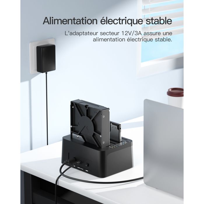- 【Dans l’emballage 】: 1 x Station d’Accueil USB 3.0 vers SATA pour Disque Dur, 1 x Câble USB 3.0, 1 x Adaptateur d’Alimentation 12V/3A, 1 x Mode d’Emploi