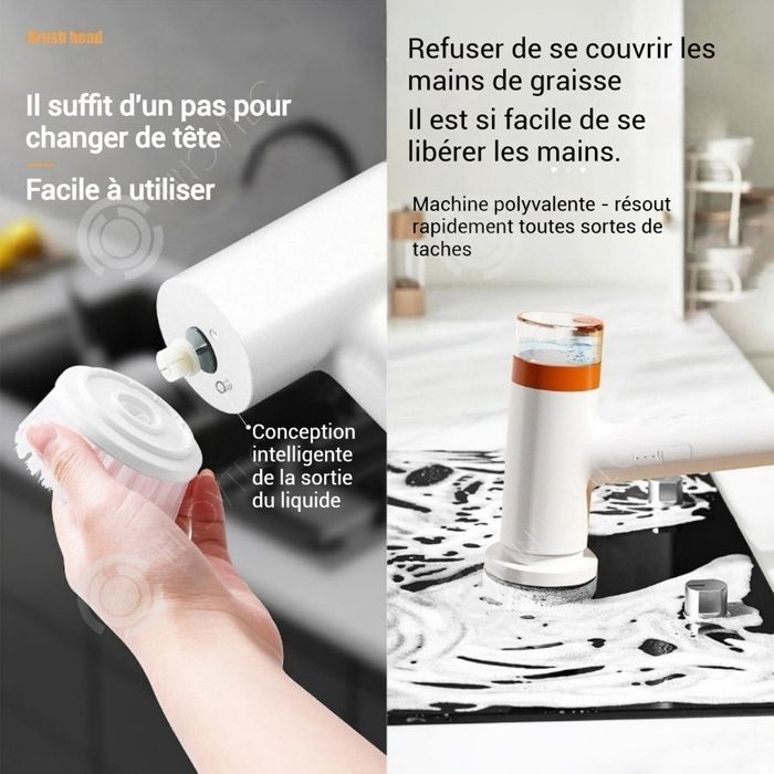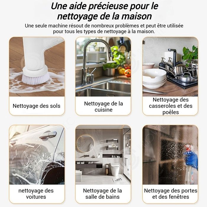 INN Brosse de nettoyage électrique 1500mAh avec 5 têtes brosse nettoyage electrique brosse électrique pour cuisine et salle de bain