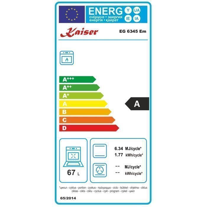 | Nom du produit | Kaiser Empire EG 6345 Em Four à gaz 60cm Autonome/ 67L/Cuisinière à gaz encastrable / Four à gaz / Four à encastrer autonettoyant |