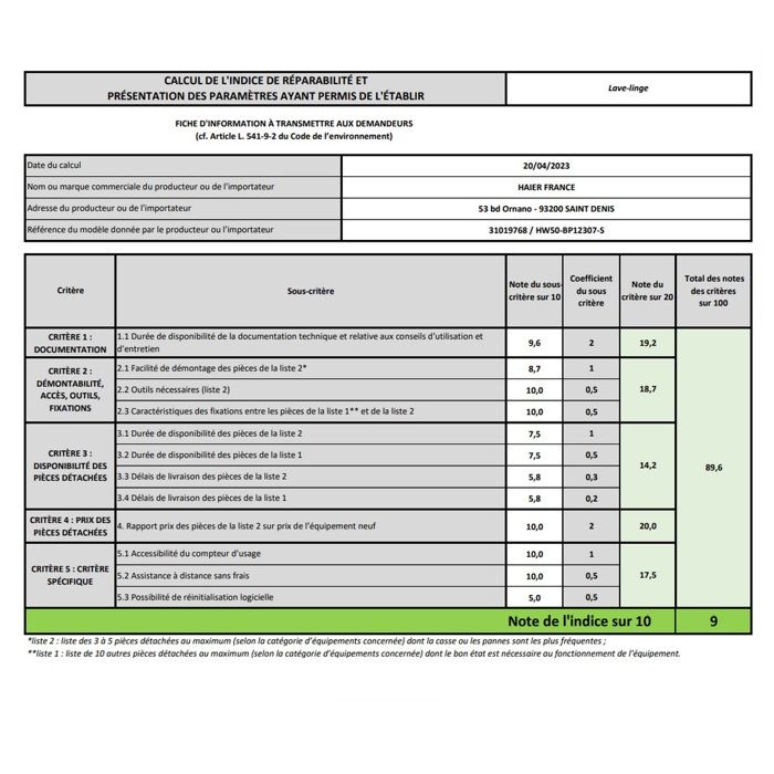 Indice de réparabilité 9