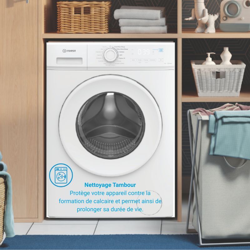 5 Cycles rapides : Une sélection de 5 cycles tous de moins d’1h, conçus pour laver de petites charges et des pleines charges offrant toujours de bons résultats de performance de lavage. Nettoyage Tambour : Protège votre appareil contre la formation de calcaire et permet ainsi de prolonger sa durée de vie. |