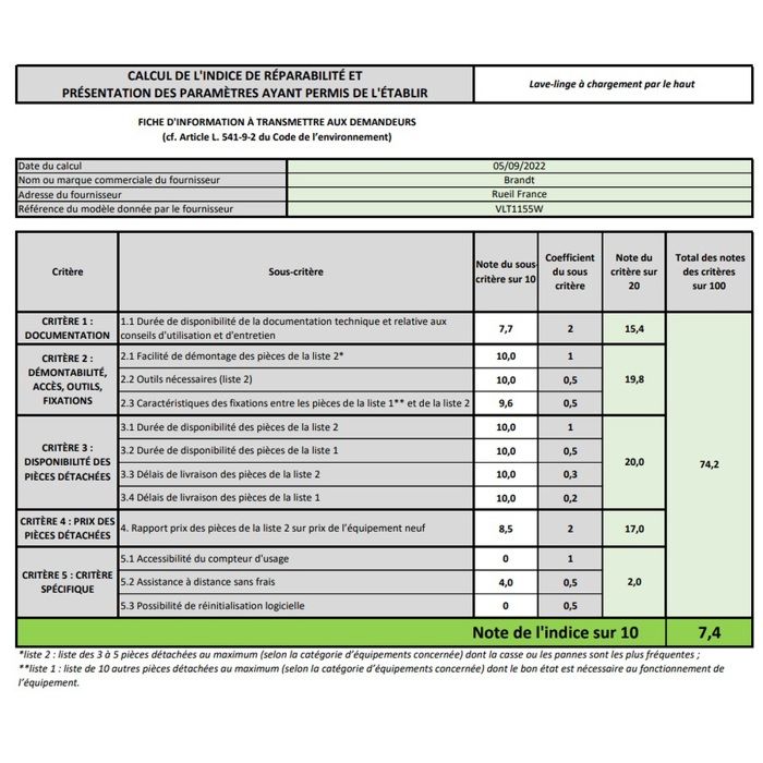 | Consommation d’énergie | 59 kWh / 100 cycles |