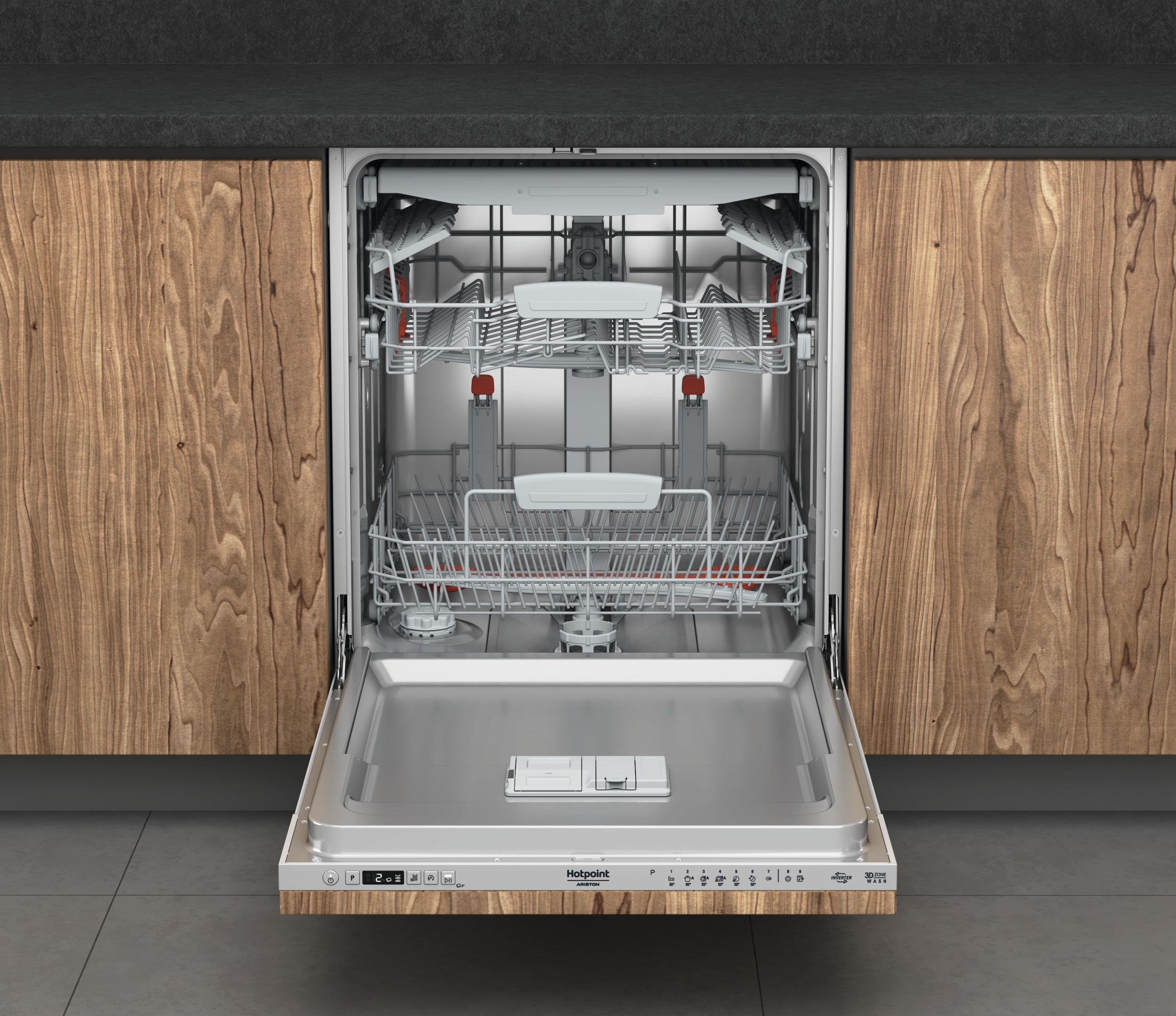 Offrez à votre cuisine un concentré de technologie et de confort avec le lave-vaisselle tout-intégrable Hotpoint HI5030WEF. Pensé pour les familles exigeantes, il accueille jusqu’à 14 couverts et propose 9 programmes adaptés à tous les besoins, du cycle rapide au lavage intensif, en passant par le mode ultra silencieux Bonne Nuit (42 dB). La technologie ZoneWash 3D, avec son bras de lavage supplémentaire et ses jets puissants, garantit un nettoyage ciblé ultra efficace ou une économie d’énergie jusqu’à 40 % en demi-charge. Grâce à ActiveDry, la porte s’ouvre automatiquement en fin de cycle pour un séchage naturel, optimal et économe, avec +98 % d’efficacité comparé à un système classique. Son moteur à induction Inverter assure un fonctionnement fiable, silencieux et économe. Et avec seulement 43 dB, il sait se faire discret. Côté aménagement, le troisième tiroir à couverts, les paniers réglables et les picots rabattables permettent d’optimiser l’espace et d’accueillir même les ustensiles les plus encombrants. L’interface digitale, le départ différé, les voyants lumineux au sol (Start2EndLight) et la sécurité anti-fuite rendent son utilisation simple et rassurante. Il s’intègre facilement en colonne et accepte un raccordement à l’eau chaude. Un allié du quotidien, aussi pratique que performant, pour une vaisselle impeccable sans effort.