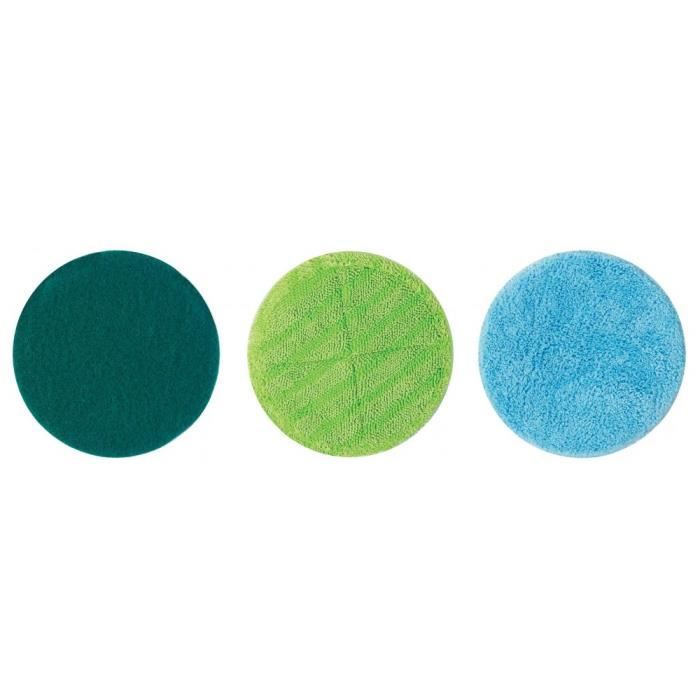 Ce lot de 6 disques interchangeables pour balai motorisé électrique est composé de 2 disques en microfibre pour nettoyer, 2 disques de polissage pour faire briller et 2 disques de récurage pour désincruster. Ils sont compatibles avec les balais motorisés électriques Duo Spinner, Rotalib et Turbo Spin.