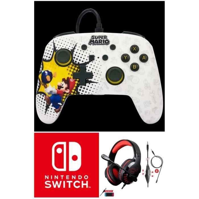| Nom du produit | Manette et casque – Nintendo – SWITCH MARIO Bob-omb – Filaire – Casque stéréo 2.0 – Câble USB détachable |