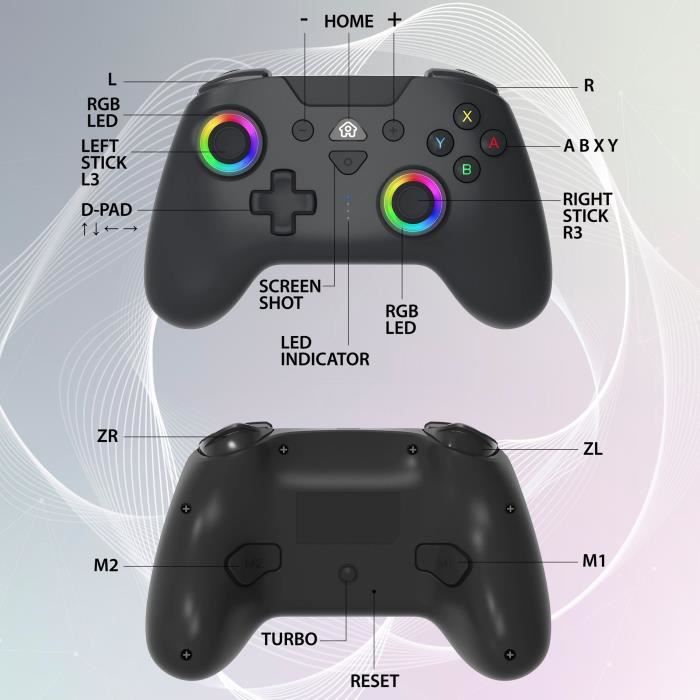 La Manette sans fil Switch 2 et Switch de SUBSONIC reproduit les mêmes fonctions que la manette Switch pro controller. Grâce à son desing ergonomique, elle offre une très bonne prise en main bien plus confortable que les joy con Switch pour jouer à plusieurs. Cette manette pour Switch offre une autonomie de 9h / 10h de jeu. Un câble de recharge usb-c est livré avec pour la recharger. Une manette complète : La manette Wireless Led controller est équipé de capteurs de mouvement (Gyroscope 6 axes et accéléromètre) afin de jouer à Mario kart world deluxe simplement en penchant la manette comme avec les joy-con Switch. Elle est également équipée de LEDs programmables et offre un look vraiment fun et sympa. Cette manette pour console Switch / Switch 2 de Nintendo propose 3 niveaux de vibrations. Elle permet en effet de régler l’intensité des vibrations et s’adapte parfaitement à votre style de jeu. Pour les fans de FPS de esport, SUBSONIC propose avec cette manette bluetooth pour Switch 2 boutons supplémentaires M1 et M2 situés à l’arrière de la manette pour améliorer la performance de jeu. Ces 2 boutons sont programmables et peuvent reproduite tous les autres boutons. La manette pro de SUBSONIC propose également une fonction turbo idéal pour les jeux à plusieurs come Mario Party.