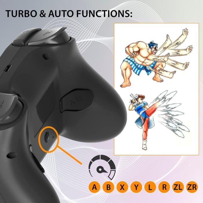 La manette pro de Subsonic propose également une fonction turbo idéal pour les jeux à plusieurs comme Mario kart World Switch 2.