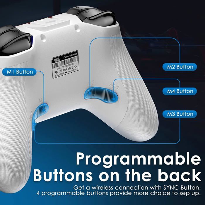 Manette Switch Pro 9124 – Sans fil Bluetooth, compatible Switch 1 & 2, Lite, OLED, PC, Android & iOS (MFi pour iOS).- Boutons programmables, rétroéclairage LED réglable et vibrations double moteur pour une expérience de jeu immersive.Connexion rapide et fonction de réveil pour jouer instantanément.