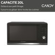 Micro-ondes Gril Candy Moderna / 20L / MO : 700W / Gril : 1000W / UI digitale / 11 niveaux de puissance / 19 programmes automatiques / Fonction Décongélation poids / Noir