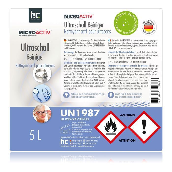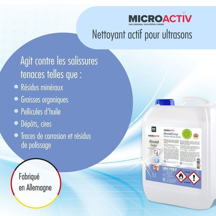 | Nom du produit | Microactiv® Lot de 4 nettoyeurs à ultrasons de 5 l pour bain à ultrasons |
