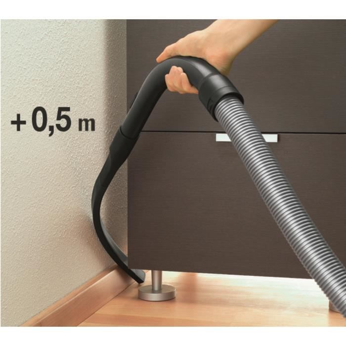 Le suceur extra-long flexible de 56 cm permet d’atteindre les endroits difficiles d’accès, tels que sous les meubles ou la voiture.