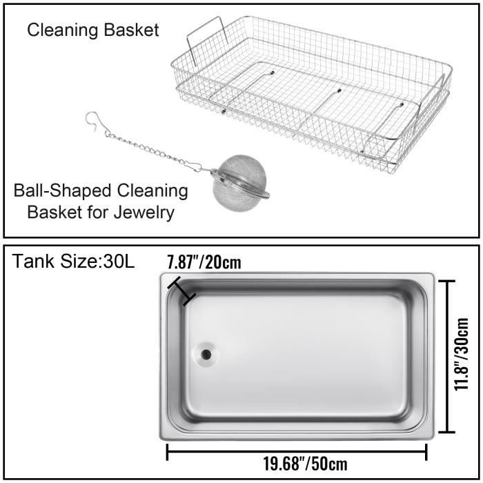| Nom du produit | Nettoyeur à Ultrasons 30 L – VEVOR – Double Fréquence 28-40 kHz – Fonction de Chauffage – Affichage LED |