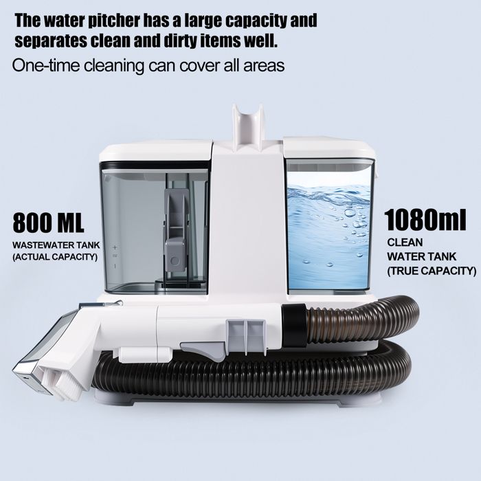 Le nettoyeur de tapis convient au nettoyage des textiles et nettoie la plupart des textiles difficiles à nettoyer, tels que les canapés, les matelas, les sièges de voiture et autres articles difficiles à nettoyer. Il est équipé de 3 tailles de têtes de brosse adaptées aux différentes zones tachées et fonctionne de manière optimale.