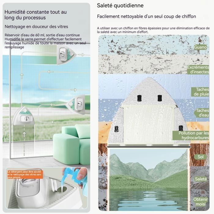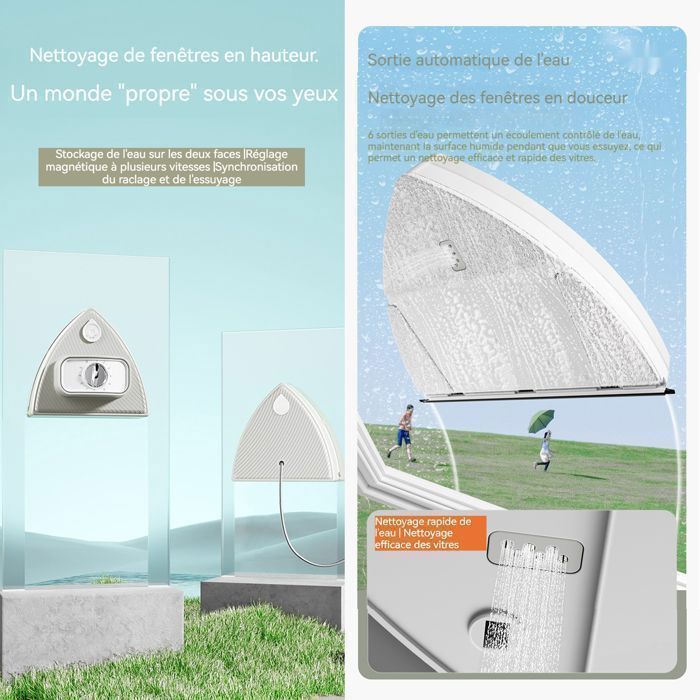 Ce nettoyeur de vitres magnétique est équipé d’une sortie d’eau automatique, qui peut garder la surface de la fenêtre humide à tout moment pendant l’essuyage, vous aidant à nettoyer les vitres efficacement et rapidement.