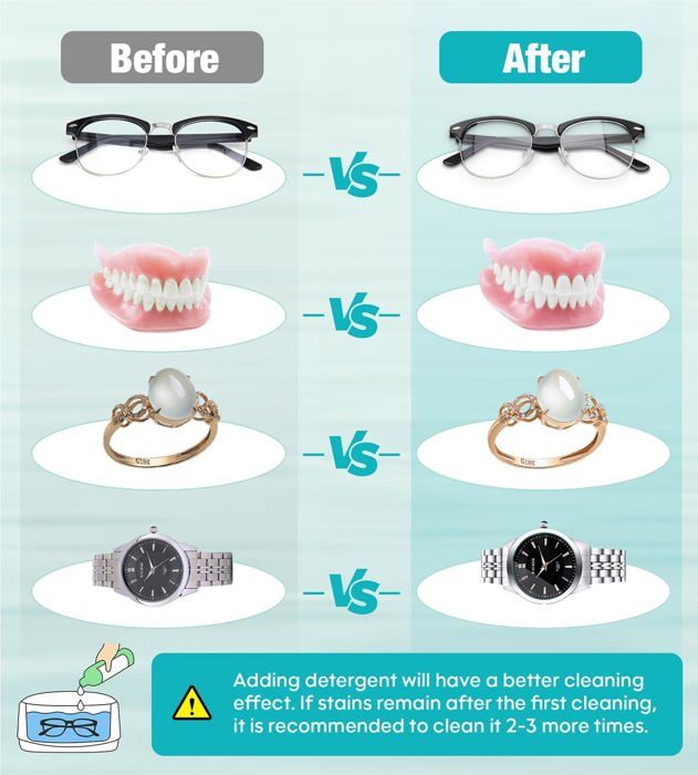 Le nettoyeur à ultrasons 650ML, le nettoyeur professionnel pour lunettes à ultrasons 49000Hz, dispose de 3 réglages de temps pour les bijoux, les prothèses dentaires, les montres, les lunettes, les têtes de rasoir, etc. NETTOYEUR