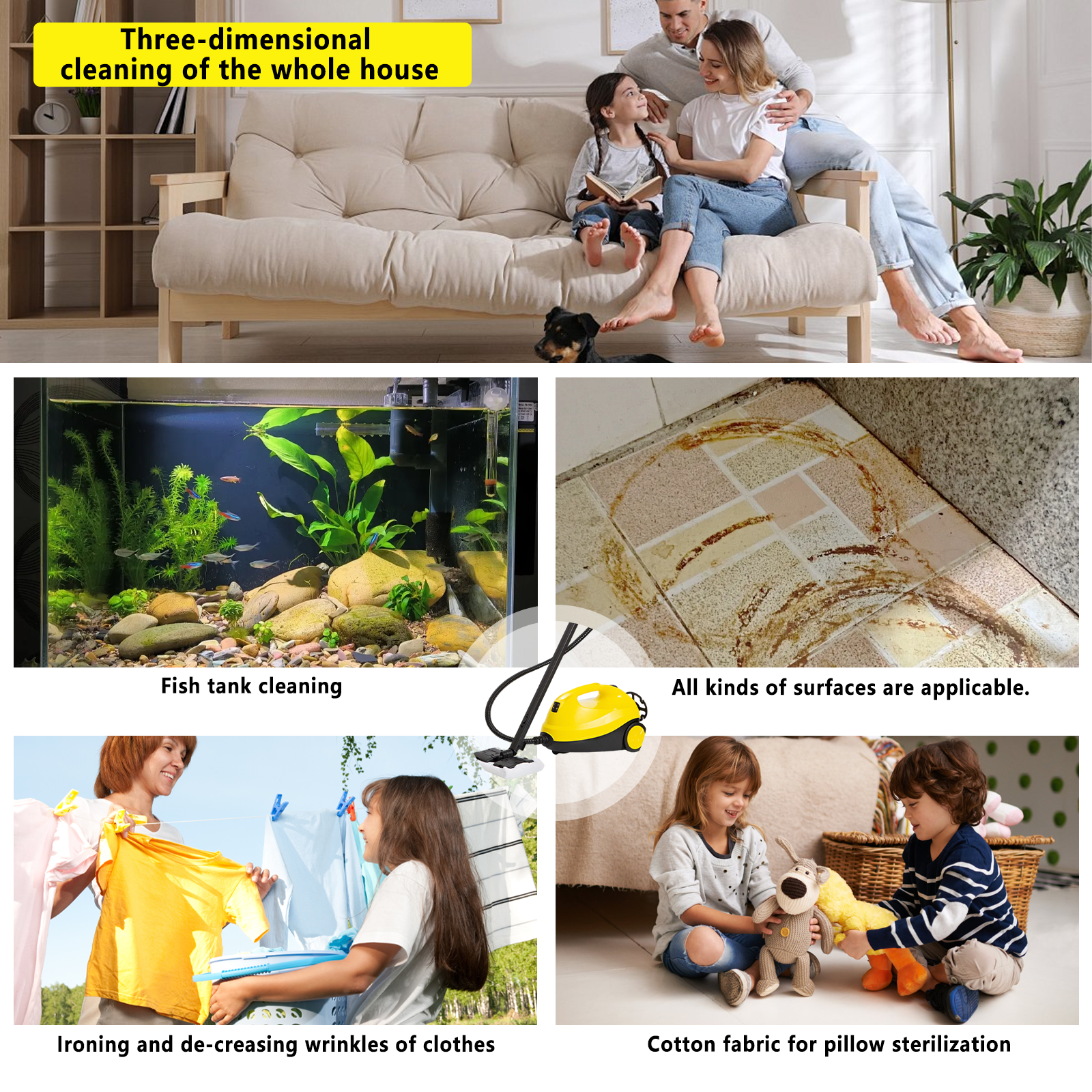 Nettoyeur vapeur 2000 W, 4 bars, temps de chauffe 6,5 min, 1,8 L, avec kit de nettoyage des sols , buses et housse en microfibre