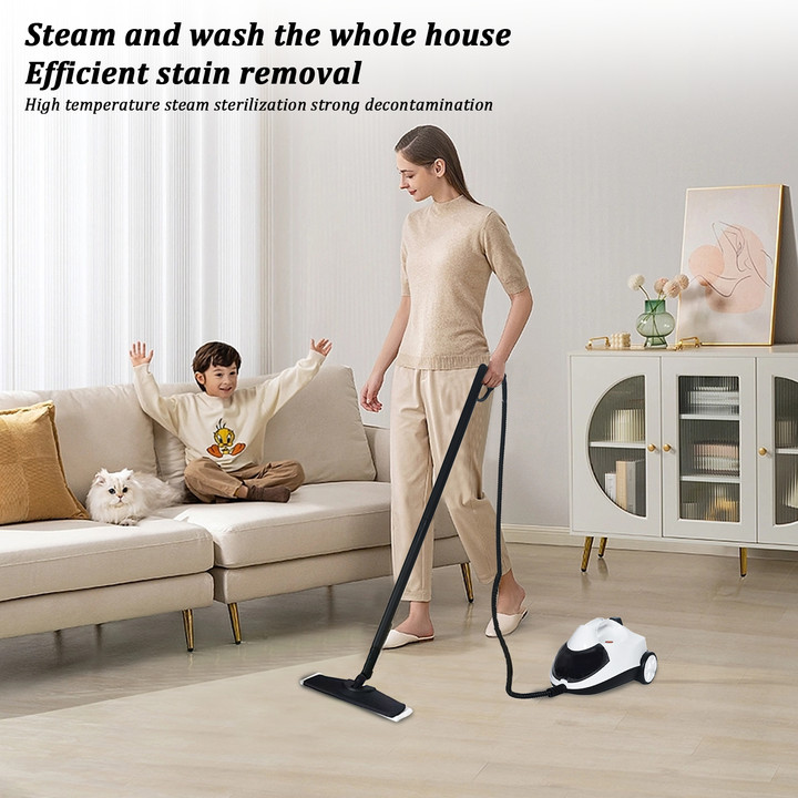 [Vapeur sans produits chimiques] Vapeur pure, sans produits chimiques : le nettoyeur vapeur utilise la puissance de la vapeur pour nettoyer, éliminant la graisse et les taches avec de l’eau uniquement, sans produits chimiques ni résidus nocifs. Ce nettoyeur vapeur est sans danger pour les enfants et les animaux domestiques, et vous offre également une tranquillité d’esprit lors du nettoyage des jouets et des surfaces. [Accessoires polyvalents et professionnels – Convient à toutes les surfaces] Comprend des accessoires spécialisés : une tête de nettoyage pour sols (tampon de nettoyage pour carrelage/parquet), une brosse à calfeutrer, un passe-tapis, une raclette (pour fenêtres), une brosse de précision (pour tissus d’ameublement) et un adaptateur d’angle (pour les coins étroits). Changez instantanément de mode pour une utilisation sur les sols, les tapis, les salles de bain, les joints de calfeutrage, les fours et même l’intérieur des voitures.