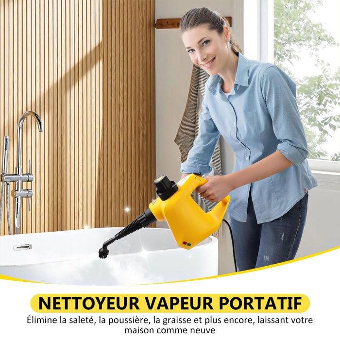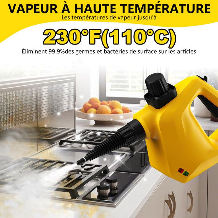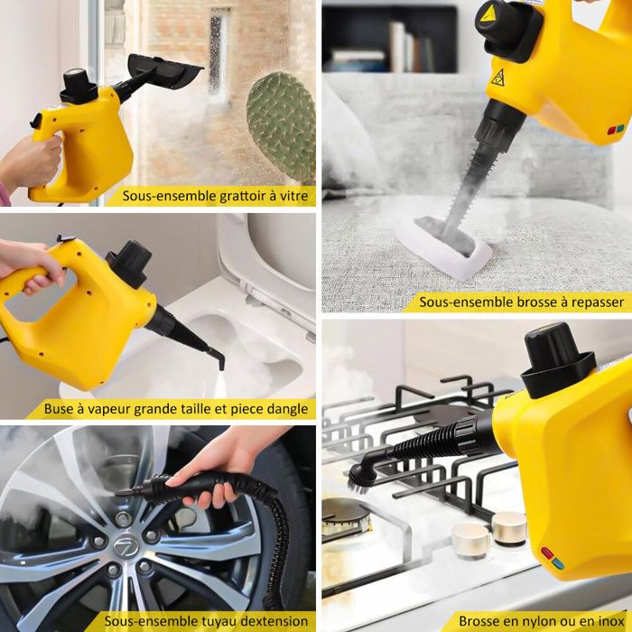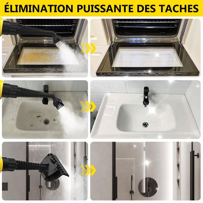 Le nettoyeur vapeur tout-en-un pour toute votre maison nettoie en une seule étape. Aucun seau ni nettoyant chimique requis ! Grâce aux différents accessoires de nettoyage inclus, vous pourrez nettoyer chaque recoin et chaque meuble ! Parfait pour nettoyer les sols, les tapis, les ventilateurs, les micro-ondes, les canapés, les portes, les fenêtres, les interstices des murs, etc.